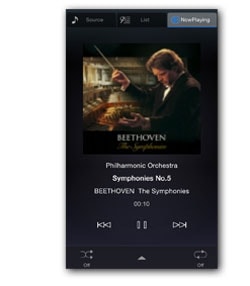 Browse and play music stored on a smartphone / tablet using the NP Controller App, with full access to cover art and track information.