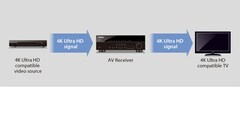 This AV receiver provides advanced HDMI features including pass-through of 4K Ultra HD, which is gaining popularity. 4K Ultra HD refers to four times the resolution of a 1080p display. This receiver is capable of passing the 4K Ultra HD data from the source to the monitor, for image clarity far beyond present standards.