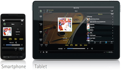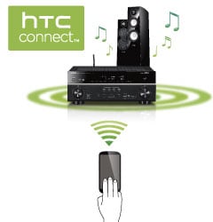 HTC Connect™ lets you stream music to your AV receiver wirelessly. You don't need a separate app because HTC Connect™ is built right into your HTC phone. Simply swiping the HTC phone screen starts music output to the AV receiver, from the HTC device's local music sources or third party music sources.