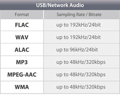 DSD 2.8 MHz / 5.6 MHz, FLAC / WAV / AIFF 192 kHz / 24-bit, Apple® Lossless 96 kHz / 24-bit playback
