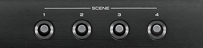 Pressing a SCENE button powers on the AV receiver and selects the input source and DSP mode. You can re-set the buttons for different sources by selecting a source and DSP mode, then pressing a SCENE button for more than three seconds.