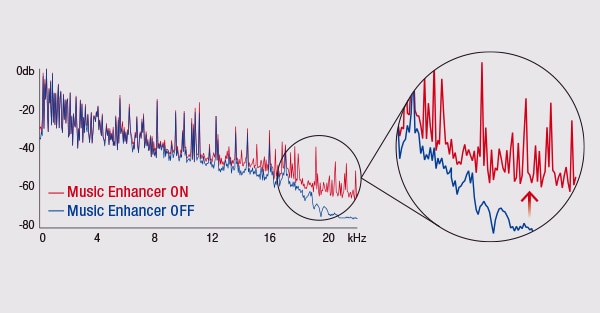 Als muziek wordt gecodeerd in een digitaal gecomprimeerd formaat zoals mp3, heeft dit negatieve gevolgen voor de frequentierespons. Maar de klankverbetering voor gecomprimeerde digitale muziek (Compressed Music Enhancer) maakt gebruik van geavanceerde digitale signaalverwerking op basis van exclusieve algoritmes om te herstellen wat verloren is gegaan. Zo klinkt muziek altijd klinkt zoals die is bedoeld.