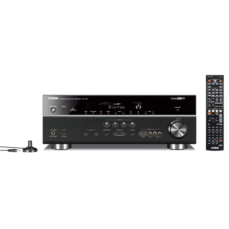 Network AV Receiver with 6 in/1 out HDMI (3D and ARC compatibility), iPhone app compatibility, front panel HDMI and USB connections, HD Audio decoding with CINEMA DSP 3D, and 1080p upscaling.