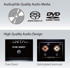 - High-end aluminium front panel and gold-plated high grade 2-channel analogue audio output terminals