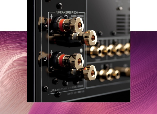 De luxueuze luidsprekeraansluitingen uit zuiver messing kunnen moeiteloos met de hand worden vastgemaakt voor een uiterst veilige verbinding.