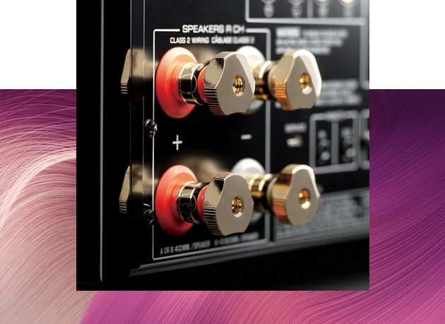 De luxueus uitgevoerde luidsprekeraansluitingen uit zuiver messing zorgen voor een uiterst veilige verbinding die moeiteloos met de hand kan worden gedaan.