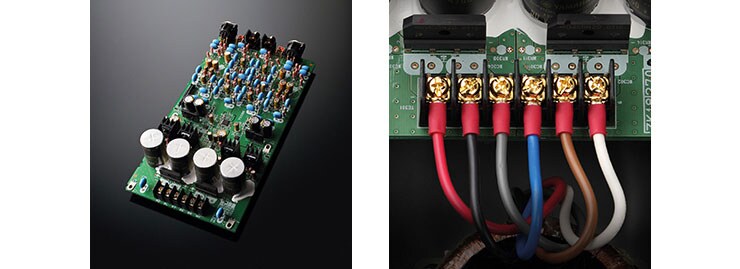 The internal design of the CD-S2100 does not separate the power supply circuit boards, which include the power transformer; the block capacitors are mounted directly on the respective digital/analogue circuit boards. Thus, an original board configuration which integrates the power supply circuits was adopted. Eliminating cabling from the power supply circuits to each circuit board and mounting directly have the benefit of reducing connection loss, as well as achieving low impedance. Moreover, cabling from the power transformer utilises the same screw-type connections we’ve given the companion A-S2100 Integrated Amplifier. Connecting directly without soldering achieves thorough contact point loss and low impedance. Signal is transmitted to the amp without loss of any information that has been read, delivering sound reproduction filled with a sense of energy and crisp openness—the over-arching aim of the S2100 Series.