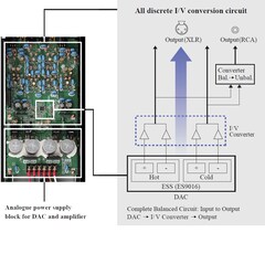 Left-right symmetrical construction, independent digital/analogue circuit configuration, with top priority on sound quality