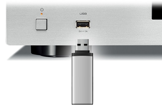 Since the NP-S303 has a convenient front-panel USB terminal, you can quickly and easily play back music you’ve saved to USB thumb drive.