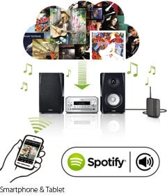 With the Spotify app on your smartphone, you've got instant access to millions of songs. And now you can stream those songs to your Yamaha system by using Spotify Connect. Just hit play to start streaming music. What's more, when you've been listening on your smartphone outside and come inside, the song immediately streams to your HiFi system—like magic, you enjoy uninterrupted music. You can also personalise playlists and receive phone calls while listening to music.