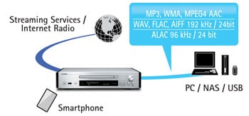Network compatibility provides easy access to all kinds of musical sources
