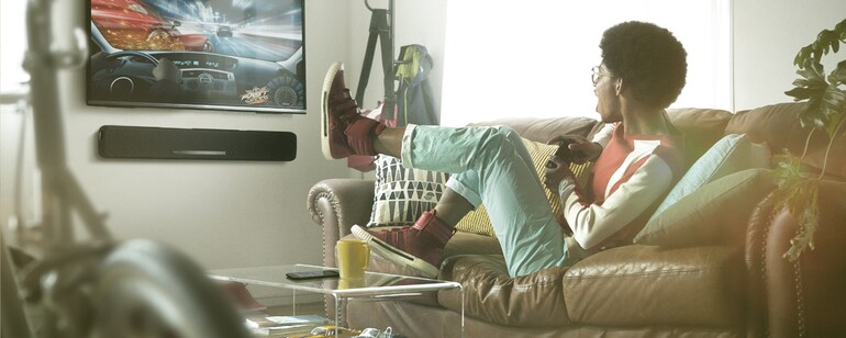 A simple HDMI connection is all you need for your TV and Blu-ray Disc™ player. Open the box, put the YAS-107 where you want, and connect the cables. Clean. Fast. Easy.