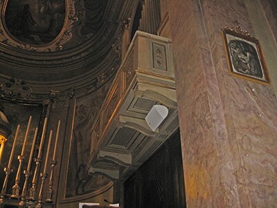 Designed and installed by Brescia-based Sil Sound, a main requirement was that the system could handle a 25-piece choir and live band, with the audio being routed to the speakers in the nave, monitors, a pair of exterior horn loudspeakers and to a codec for broadcasting Mass on live radio. “The system needed to be versatile, reliable and deliver great sound quality, but it also needed to be user friendly so it could be used by church staff who are not audio professionals,” says Sil Sound owner Silvio Mussoni.