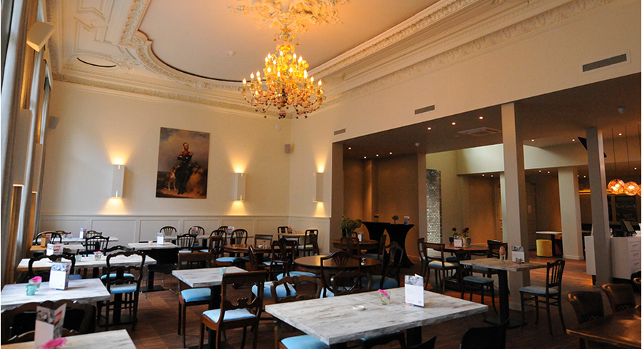 It was originally built as a concert venue and coffee shop for the Royal Liedertafel Souvenir des Montagnards - a Dutch association, founded in 1845, to further broad cultural objectives including vocal and instrumental music, opera and theatre.