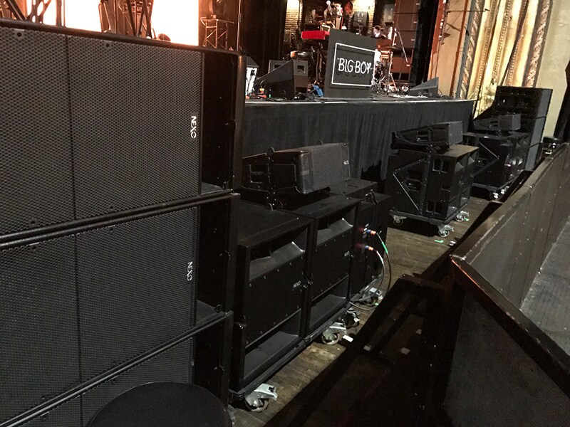 Yamaha provided NEXO systems for three stages. The Metropolis Stage PA consisted of 12 NEXO STM-M28 with 6 STM B112 per side, flown side by side. 3 STM S118s and 3 RS18 Ray Subs were used per side with 3 STM-M28s used for front fills. Monitors consisted of 8 45-N12 wedges, 6 PS15 R2 speakers, and 2 LS18s used as drum subs. Stage fills consisted of 2 STM M46 boxes over 1 STMB112 over one STM S118 per side. Two Yamaha CL5 digital consoles were also used at the Metropolis Stage.