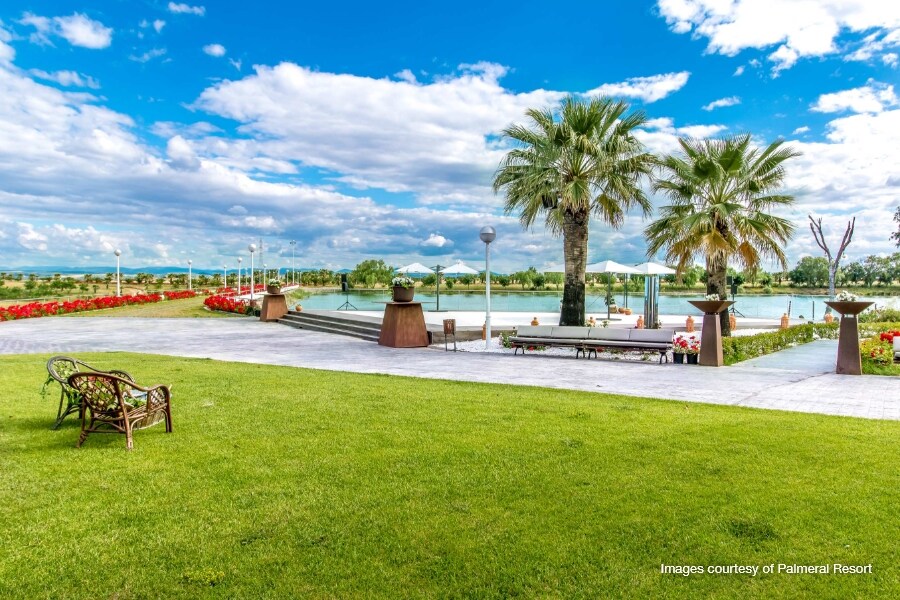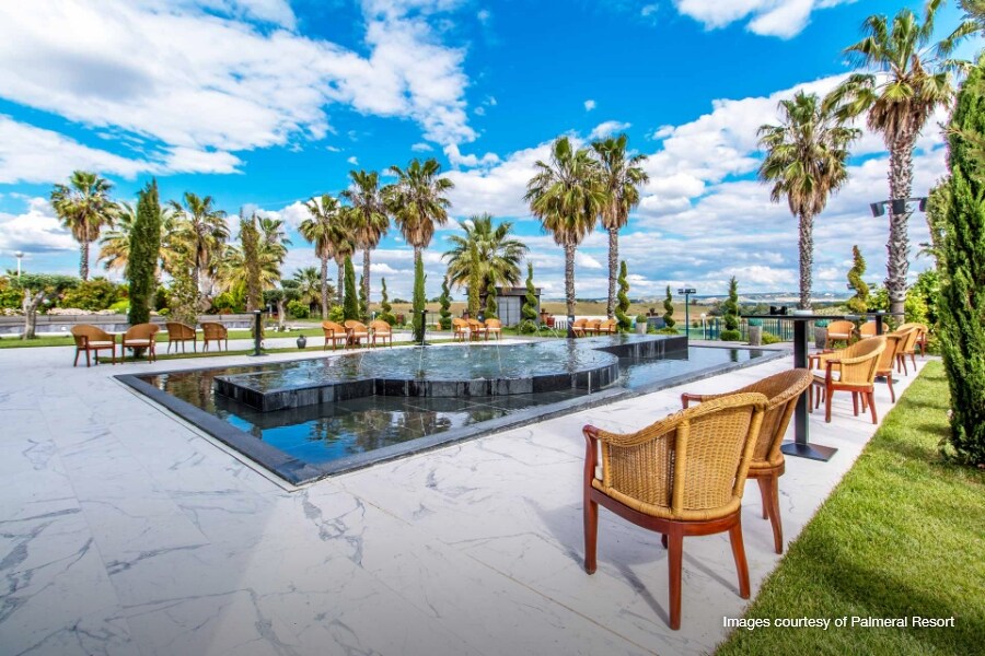 Situated at Talavera de la Reina in the province of Toledo, 140km south west of Madrid, Palmeral Resort is set amongst palm trees, fountains, attractive gardens and a lake. Featuring a chill-out terrace, festival tent, outdoor lounge, swimming pool, disco, children’s area and indoor facilities comprising a main lounge, spacious restaurant, attractive bridal suite, reception areas and highly attentive staff, all guests are assured of an enjoyable and memorable experience.