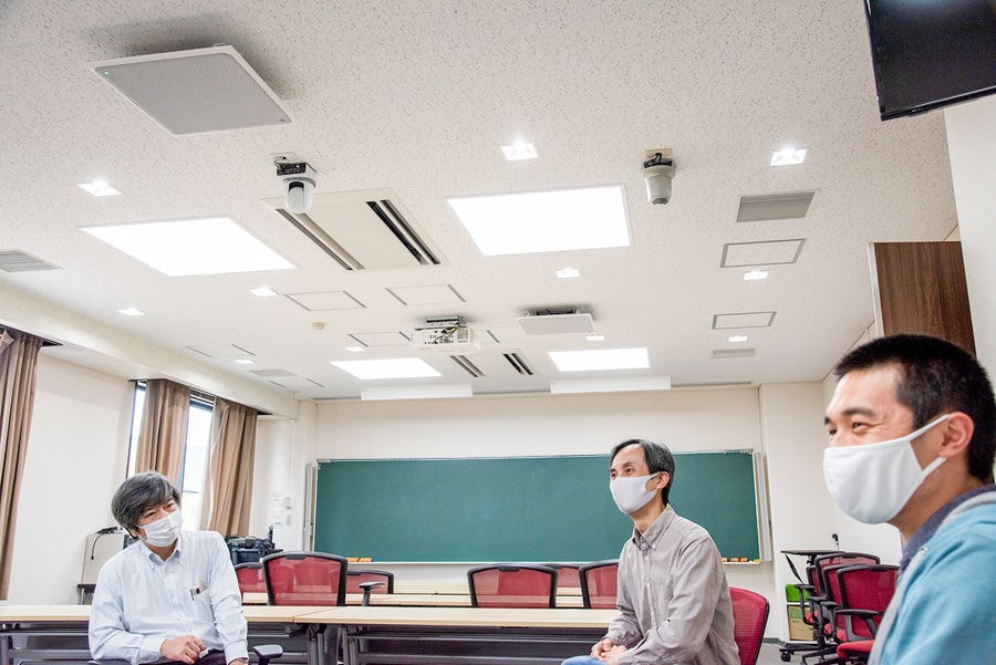 Professor Onishi: Either way, we need more rooms where we can conduct remote meetings because of the coronavirus. Last year, we set up three or four Yamaha speaker-phones YVC-1000 and their microphones to conduct remote meetings. However, I was concerned that we would need to install it every time, but if we could attach the microphone to the ceiling and implement other devices... That's where Mr. Kanno found ADECIA for us.