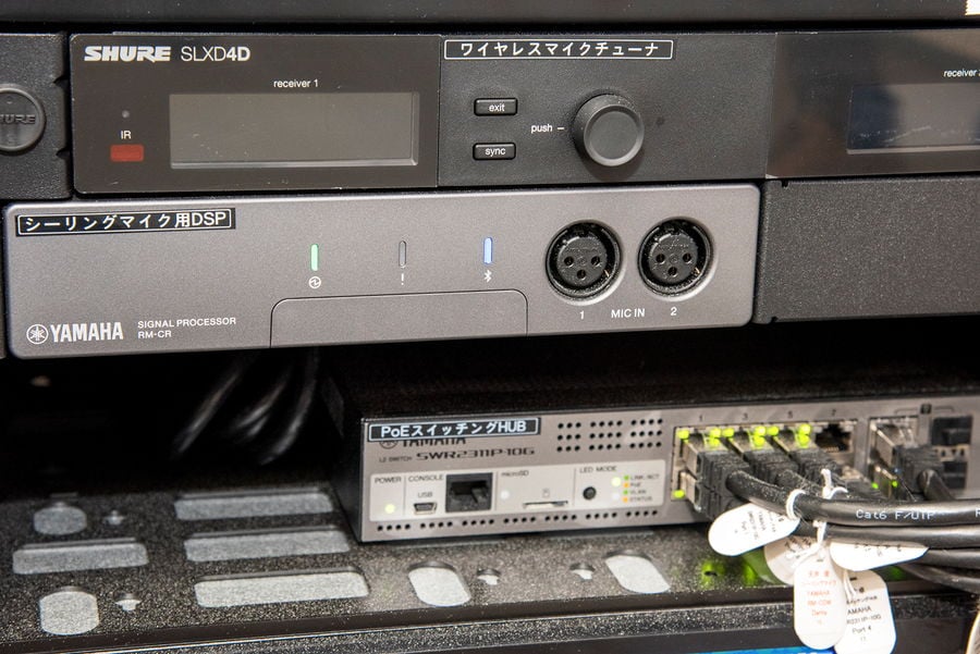 Rack-installed remote conferencing processor RM-CR and PoE-compatible L2 switch SWR2311P-10G