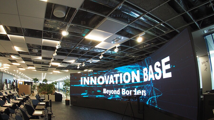 Mr. Tsunemi: Because the open innovation space is a large space with almost no walls on that floor, I wanted to implement some form of zoning to prevent sound from spreading too far. The system uses a ceiling-mounted speaker and it is arranged so that the required volume is attained for the required area.