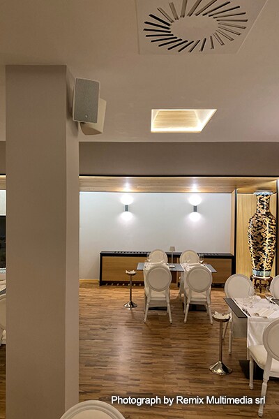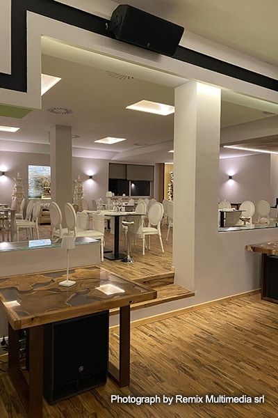 “When Mr. Magni described his idea for the project and what he wanted us to achieve with the audio system, I had no doubts about what to propose,” says Michele. “It was obvious that four Yamaha IF2208 two-way, full-range speakers plus two DXS15XLF powered subwoofers would deliver the desired combination of clarity and power in the dancefloor area. In the restaurant area, four of the excellent VXS5 surface mount speakers would provide the desired coverage and complement the main system, thanks to their highly musical sound.”