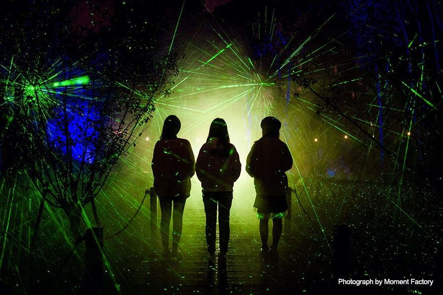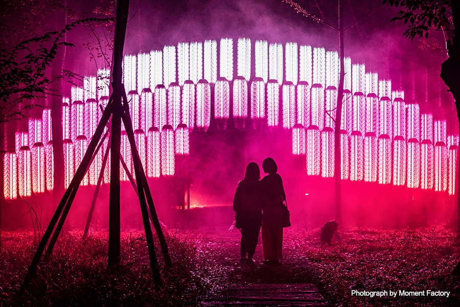 Moment Factory’s Oriens Lumina is the company’s 16th enchanted night walk experience and its first in China. Like the previous Foresta Lumina, Alta Lumina and Kamuy Lumina night walks in Canada, France and Japan respectively, it relies on a large Yamaha audio inventory.