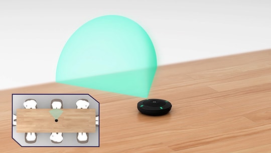 The RM-TT is equipped with auto voice tracking (automatic speaker tracking function) in each microphone, allowing for flexible room layout and participant positioning. When the speaker is among multiple RM-TTs, RM-CR automatically selects the closest microphone to the speaker to pick up sound, enabling a highly clear voice to the far end.