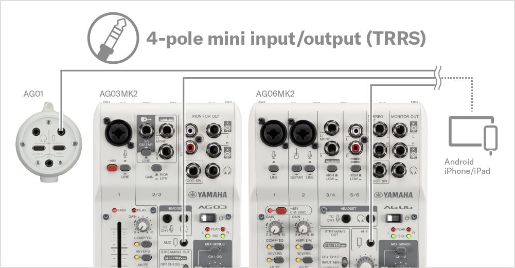 De 2e generatie van de AG-serie breidt deze functies uit met de geüpdatete AG06 en AG03 en een geheel nieuw AG01-model - allemaal ontwikkeld om een meer diverse reeks gebruiksscenario's te dekken. Alle modellen en optionele producten/pakketten zijn verkrijgbaar in zwart of wit om eenvoudig aan te passen aan verschillende streamingomgevingen.