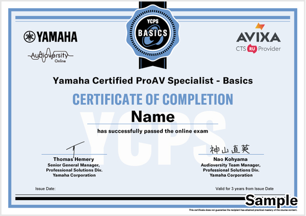 Selected Audioversity courses offer AVIXA CTS holders the opportunity to earn Renewal Unit (RU) credits with a course completion certificate. Some courses also offer Yamaha certification, which validates the learner's commitment to their professional development and helps to enhance their career prospects and open new opportunities.