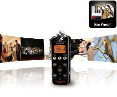 The PR7 features five recording presets with optimized HPF and dynamics control settings tailored to the varying requirements of different recording environments. The OFF setting is ideal for capturing musical performances, NEAR is suitable for personal instrument practice, BAND is best suited for multi-instrumental performances, FIELD is best for outdoor recordings and SPEECH is for meetings, seminars or other speaking engagements.