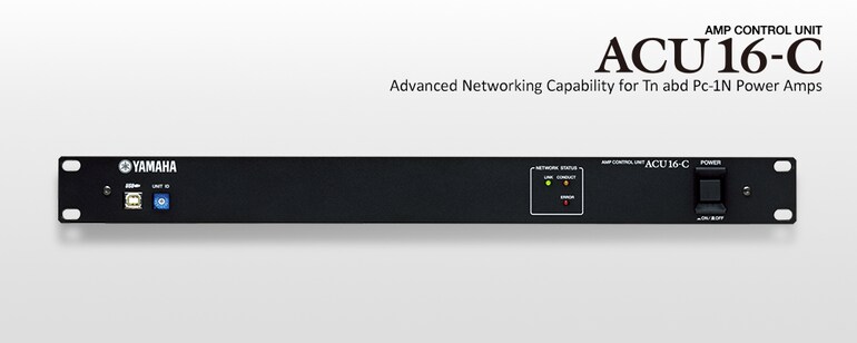 16-channel D/A Converter and Monitor/Control Unit The ACU16-C converts up to 16 channels of digital audio (48 kHz/20-bit or 24-bit) to analog using CobraNet technology, and delivers analog audio to the power amplifiers with a dynamic range of 110dB. Tn and PC-1N series amplifier settings and status can be monitored and controlled using the supplied NetworkAmp Manager software and a computer: power on/standby, attenuation, out/in levels, temperature, load impedance, and more. One ACU16-C can control up to 32 Tn and PC-1N series amplifiers. Connect a computer to any NHB32-C or ACU16-C in the network, and have full monitoring/control capability over all CobraNet-connected Tn and PC-1N series amplifiers. About CobraNet™ There is a growing need for large-scale audio systems, and with it the need for advanced networking technologies that can distribute high-quality audio quickly and reliably throughout large venues or open facilities with fully integrated control. CobraNet™ is a sophisticated technology that enables transfer of multiple audio and control channels via Ethernet cable. As an integrated system, CobraNet allows digital data to be carried up to 100 meters* from one port to another device by common CAT-5/100Base-TX cabling, or up to 2 kilometers by optical fiber. It is fast, with constant 5.33ms latency**; it is reliable, thanks to built-in redundant systems; and, with the standard cabling and connections, it is remarkably easy to use and economical. * The actual maximum length of cables may differ depending on the quality of the Ethernet equipment or the particular settings used.** Low latency mode of CobraNet™ is now supported, which enables users to choose from 5.33ms, 2.67ms and 1.33ms.