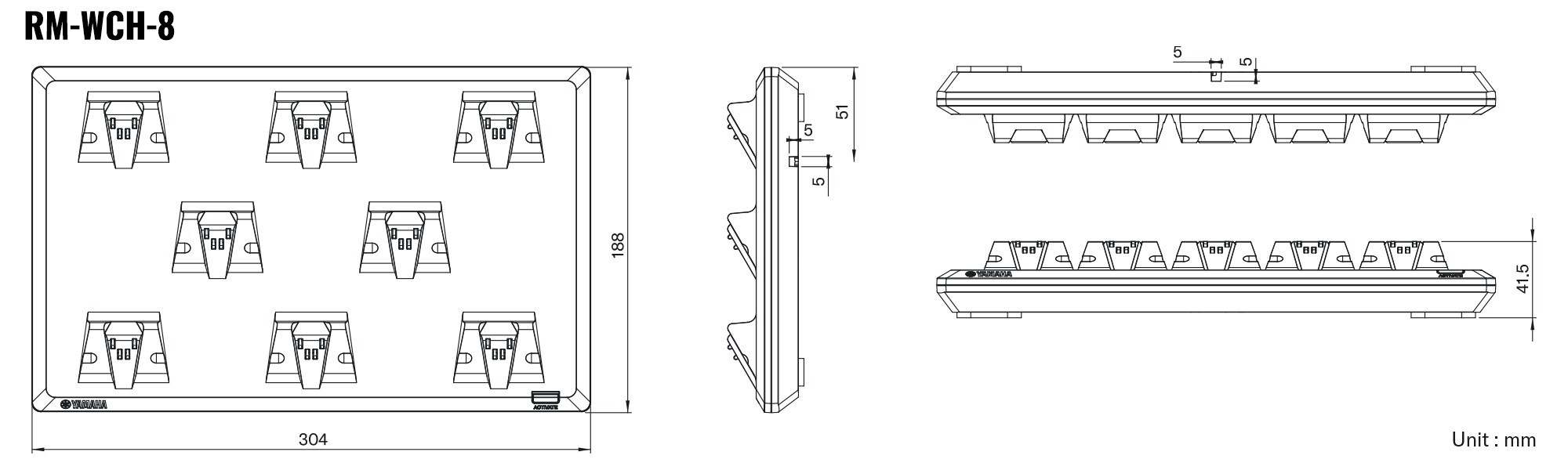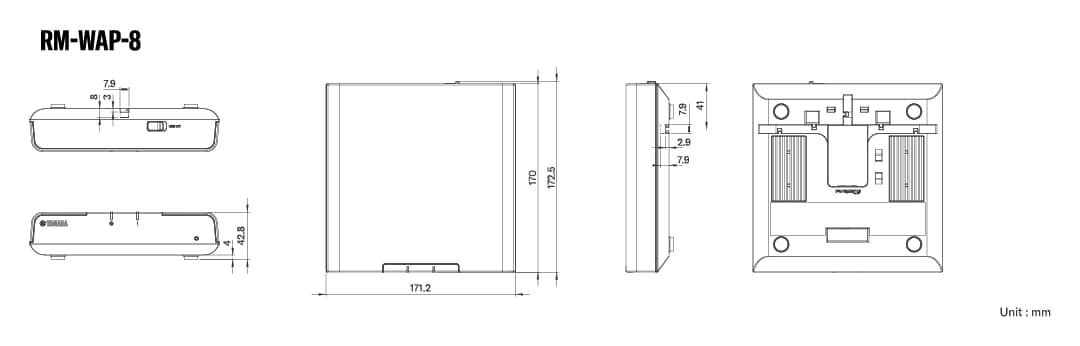 | I/O | RM-WAP-16: Dante (1 in /16 out), RM-WAP-8: Dante (1 in / 8 out) | USB Type C (for battery charging) x1, Charger I/F (4pin) x1 | USB Type C (for battery charging) x1, Charger I/F (4pin) x1 | USB Type C (for battery charging) x1, Charger I/F (4pin) x1 | DC IN x1 | - | ||