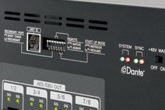 Dante directly supports star network configurations, so up to eight I/O rack units can be connected to any single CL series console and conveniently located wherever they are needed most. A few simple DIP switch settings are all that is required to change to daisy-chain networking as required.