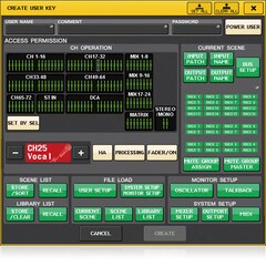 Limited access to CL console functions can be provided for less experienced operators and accident prevention via multiple User Key sets that can be stored in the console itself* as well as on USB memory. * To be supported in an upcoming firmware update. .