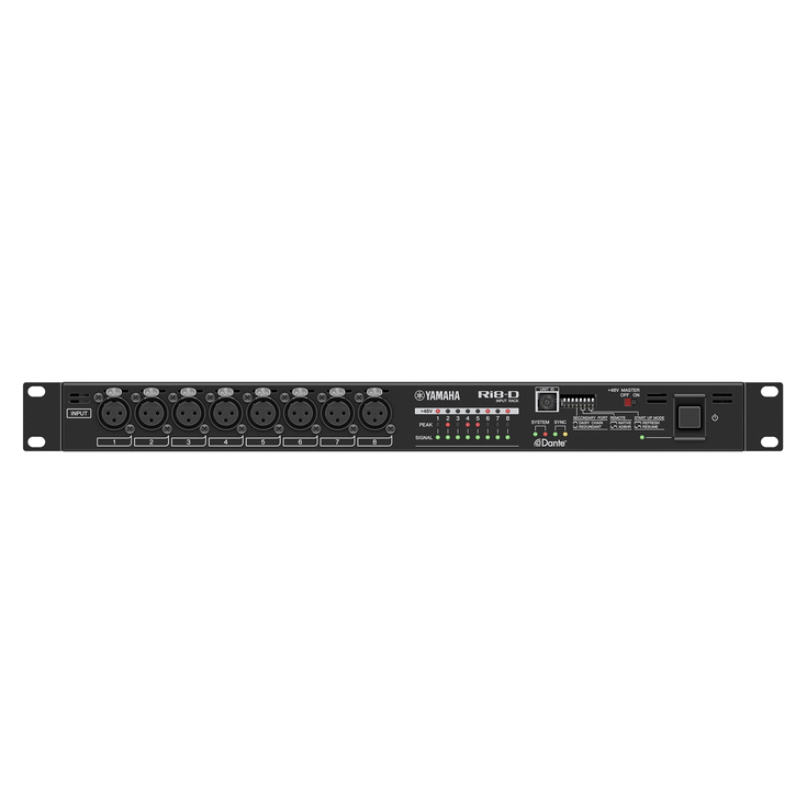 This high-performance I/O rack features 16 analog inputs and 8 analog outputs, and is compatible with Yamaha CL and QL series consoles as well as the RIVAGE PM series. The Rio1608-D2 connects directly to Dante digital audio networks, allowing flexible system configuration. Dual power supply units are built in for high reliability, and a character/graphic display offers easy visual confirmation.