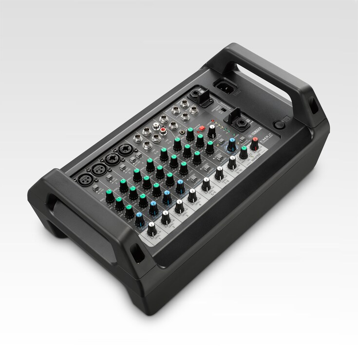 Despite being a mixer and an amplifier in a single unit, the EMX2's dimensions (37.5cm x 22cm x 15cm / 14.8" x 5.8" x 8.7") are surprisingly modest, making it easy to fit along with speakers even in the trunk of a small car. The lightweight body also features handles for a superior level of portability that will benefit anyone setting up a PA for applications where time is a consideration.