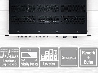 • DSP functions for music playback and microphone use (Feedback Suppressor, Priority Ducker, Leveler, Compressor, Reverb & Echo)
