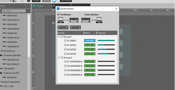 Devices can be assigned to groups, allowing various types of control to be applied to the group as a whole. For example, preset recall, overall mute, synchronization, and more can be assigned to entire groups for efficient operation and management.