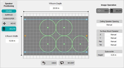 STEP5: Check your settings and result of an estimate of the number of speakers required. Able to adjust (move or remove) position of individual speakers if needed.