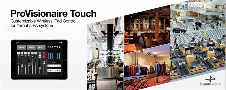 ProVisionaire Touch is a software based control and display interface creation tool for customized remote control of Yamaha MTX and MRX series processors. No specialized programming skills are required. An intuitive interface makes it easy to create faders for volume control and switches for source selection, for example, and position photographs or other graphic elements on the tablet screen as required to create original control panels that are ideally suited to individual applications and users.