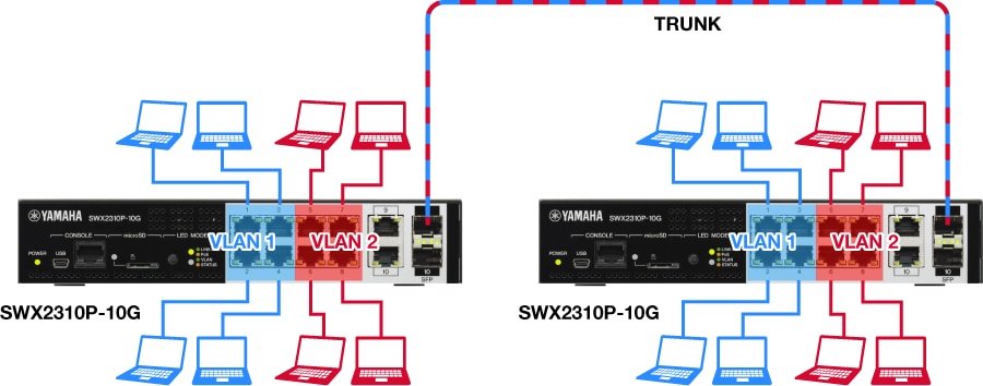 One trunk line (cable) can be used to connect multiple VLANs between switches.