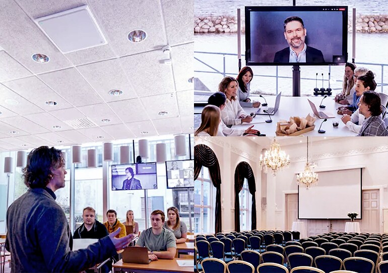 The ceiling array microphone RM-CG quickly and reliably detects presenters in the room and captures their voices, with a refined focus on intelligibility. Remote participants’ voices are projected clearly through VXL column loudspeakers. The ADECIA solution allows easy integration with many third party camera and collaboration solutions.