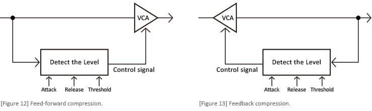 Most modern compressors are feed-forward types, while most vintage compressors use feedback. The turning point was around the mid ‘70s when the development of VCA chips made it easier to implement feed-forward operation. The dbx 160 and similar contemporary compressors are feed-forward types, while older units like the Urei 1176 and Teletronix LA-2A rely on feedback operation. Among the numerous factors that contribute to the sound of a compressor, the choice of feed-forward or feedback control has a significant effect. Feed-forward compressors tend to have a more natural, open sound, while feedback compressors can create a more powerful, assertive sound.