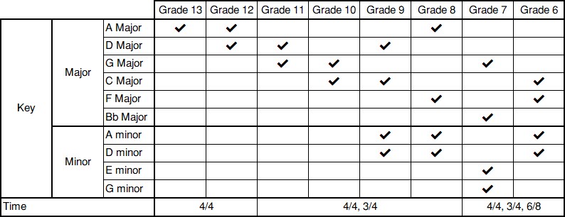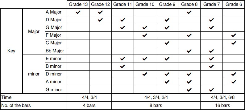 - For Grades 13-8, the backing track files are prepared at the exam room.