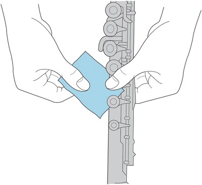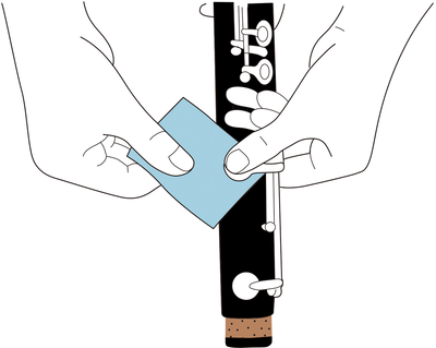 Plaats het reinigingspapier tussen de polster en het klankgat en sluit de klep vervolgens voorzichtig een paar keer.