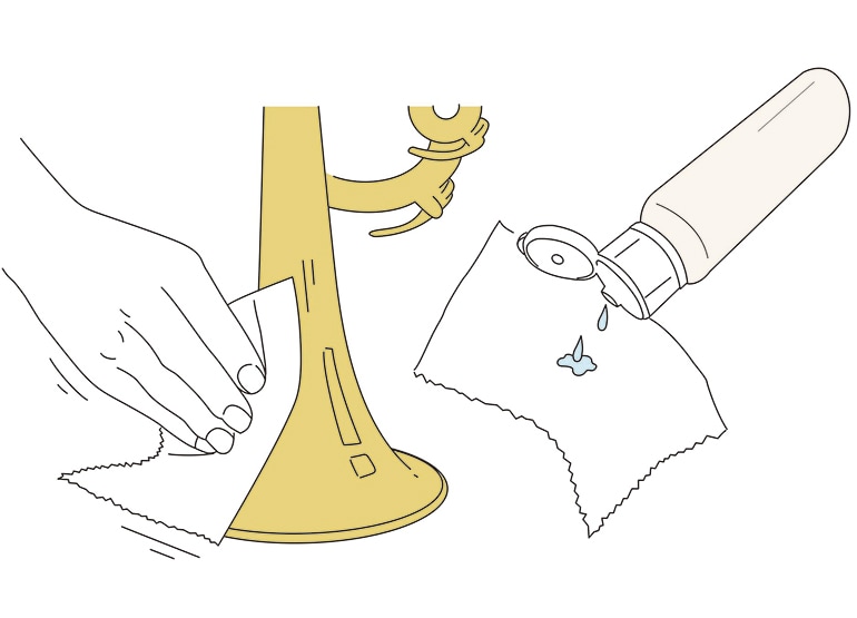 Breng een kleine hoeveelheid aan op polijstgaas of een polijstdoek.