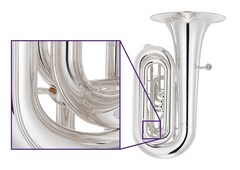 The YBB-623 and YCB-623 are the first tubas in the world to provide a Secondary main tuning slide. This provides a greater tuning range, and solves a number of common problems such as extending the main slide too far in summer temperatures causing it to fall, or the pitch being too low and out of adjustment range in the winter months. The Secondary main tuning slide can be adjusted while playing, and it is possible to make fine pitch adjustments when no valves are pressed.
