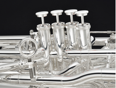 The piston pads are the same red low-resilience pads that are a popular feature on Yamaha custom tubas. The pads contribute to a smooth playing feel as well as clear transitions between notes.