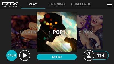 Met een simpele swipe kunt u kits en songnummers selecteren en aanpassen, de metronoom instellen en de triggerparameters aanpassen aan uw speelstijl. U kunt deze informatie bekijken tijdens het spelen in de trainingsmodus en leren hoe u vooraf ingestelde songs kunt afspelen met instructievideo's met muziekprofessionals.