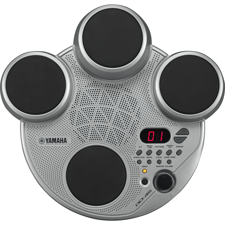 De DD-45 maakt draagbare digitale drums beschikbaar voor de meer ambitieuze drummers.Vier aanslaggevoelige pads en een pedaal (niet inbegrepen), 99 wereldpercussiegeluiden en een grote selectie begeleidingen maken het met andere instrumenten meespelen leuk en makkelijk. Via de AUX-ingang kunnen drummers een mp3-speler of iPod(R) aansluiten en met hun favoriete muziek meespelen.