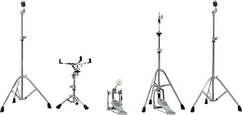 The wide legs ensure the stability of the bass drum and feature rough surfaces to allow the pedal to be fastened firmly even when using metal hoops, and giving the kit a level of power that belies its small diameter.